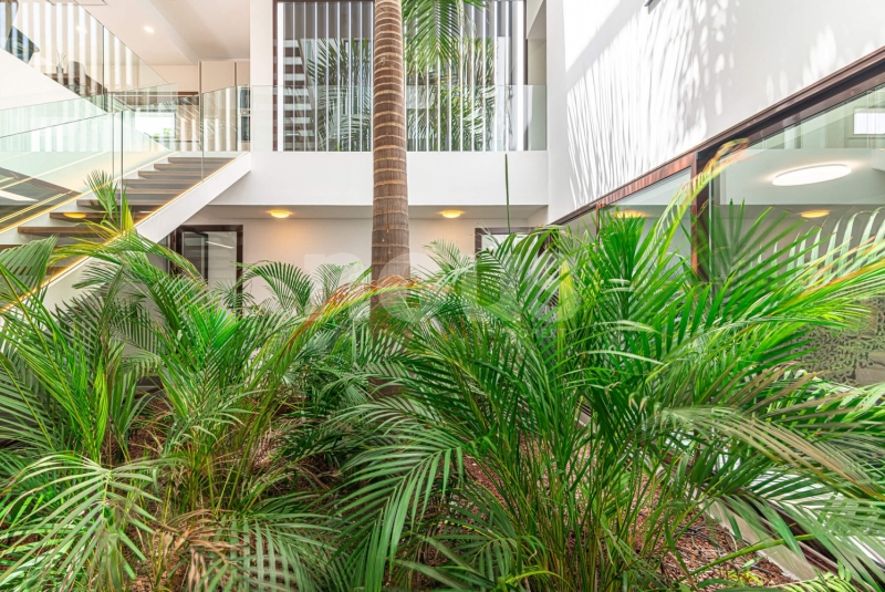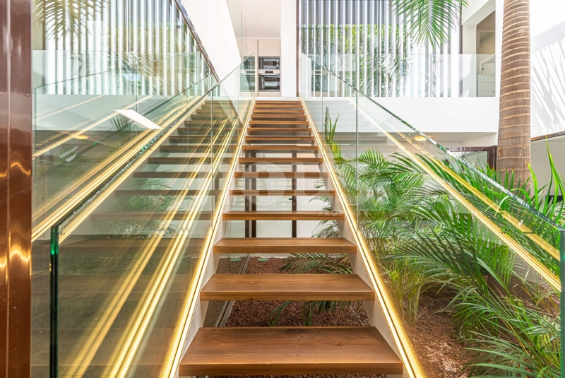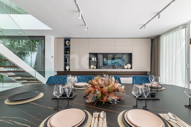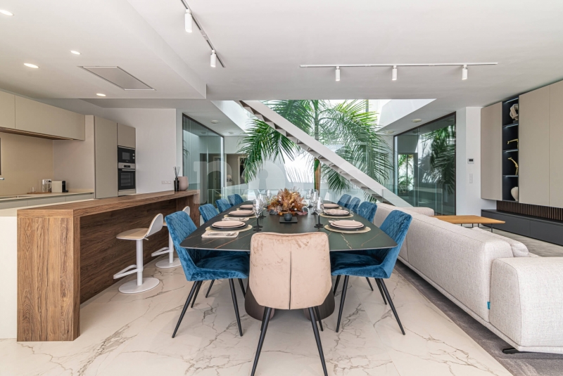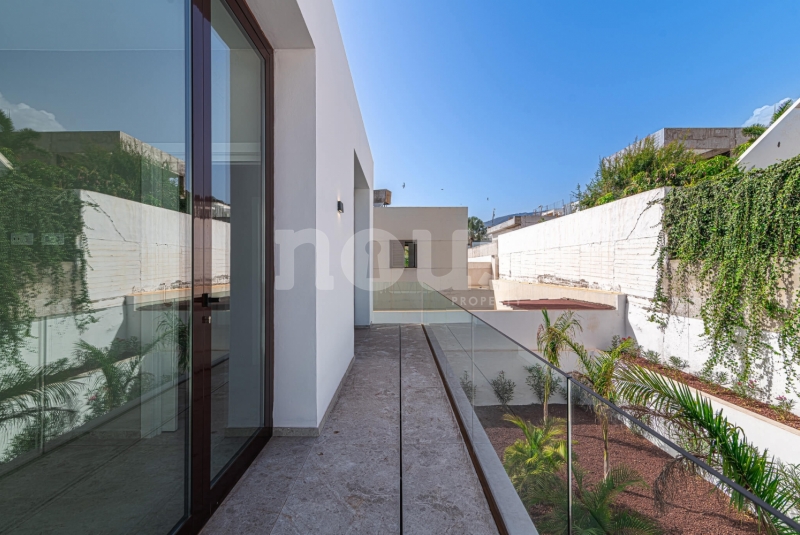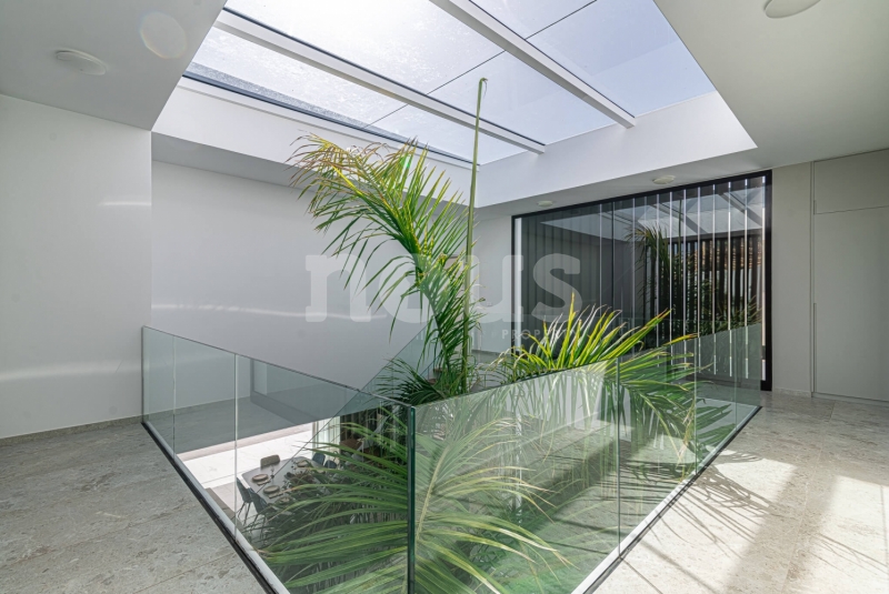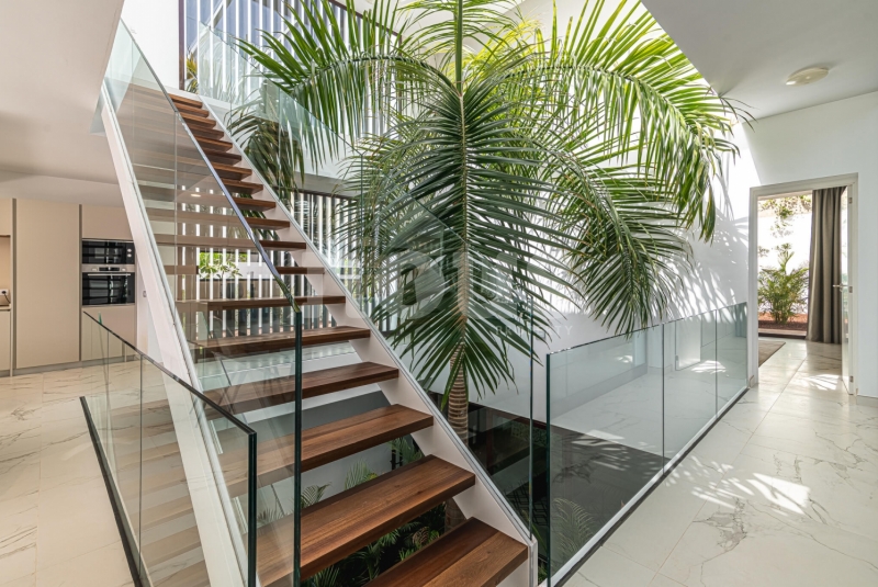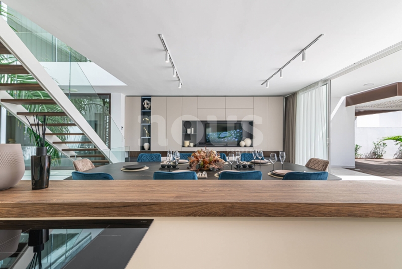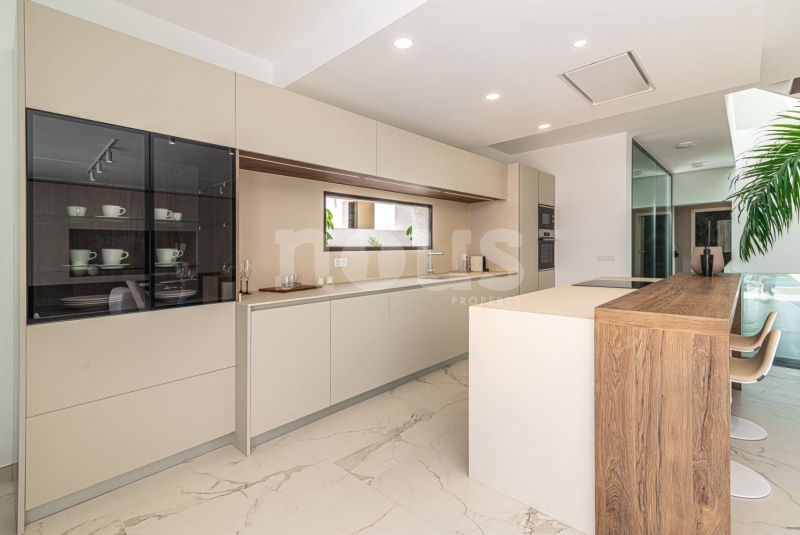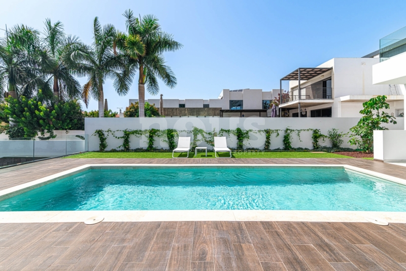 De villa is uitgerust met materialen van topkwaliteit, selectie van de beste aluminium kozijnen voor de ramen, dubbele beglazing tegen akoestische en thermische transmissie, en alle behuizingen zijn thermisch en akoestisch geïsoleerd. Inclusief zonnepanelen, warm/koud airconditioning in alle woonkamers, pre-installatie van internet, alarmen, domotica, beveiligingscamera's, automatische elektrische deuren voor de garage en toegang tot het perceel, irrigatie-installaties voor de tuinen en een groot zwembad met waterverwarming.