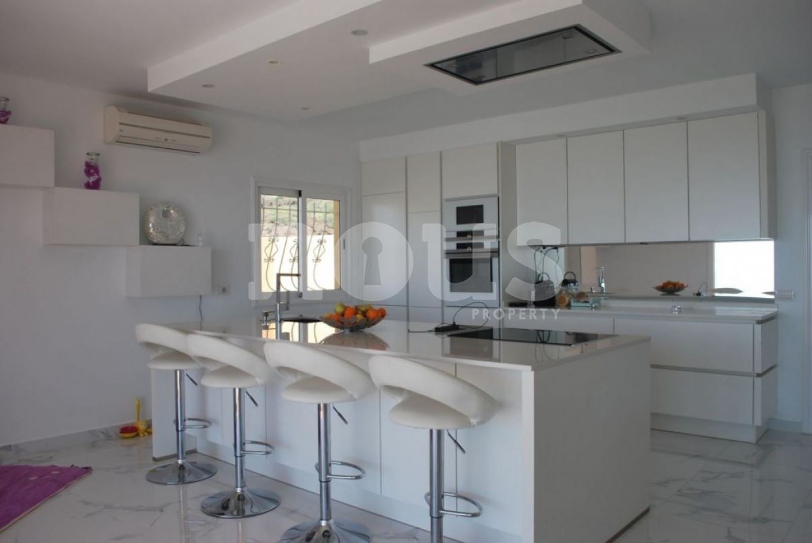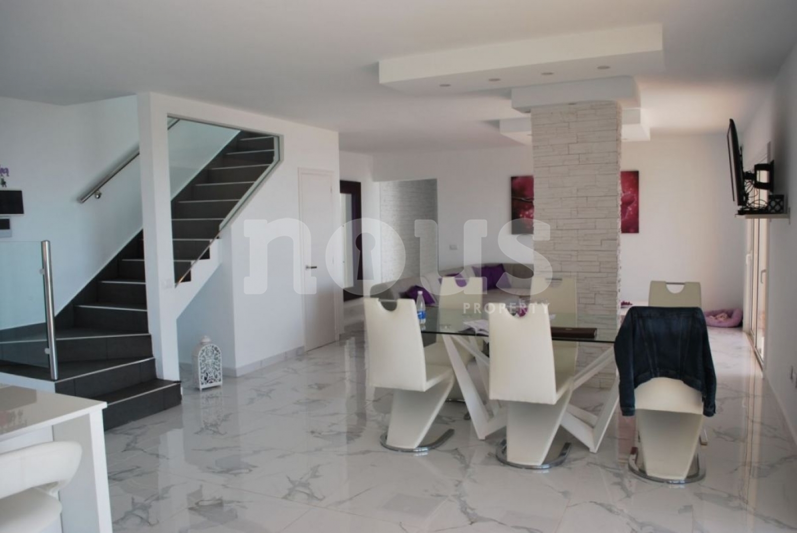 > Gezellige villa van 154 m² op twee verdiepingen, meer kelder, gelegen op een perceel van 575 m² met een indrukwekkend uitzicht op de kust en de berg. Op de begane grond heeft het twee slaapkamers met directe toegang tot het uitzicht op het terras en de zee, een modern open concept volledig uitgerust met hoogwaardige apparaten en een lichtgevende woonkamer met zorgvuldig geselecteerde meubels. Vanaf hier is het toegankelijk tot een terras met een Solarium -gebied en oneindig zwembad, met een panoramisch uitzicht op de zee dankzij de geglazuurde gevel.