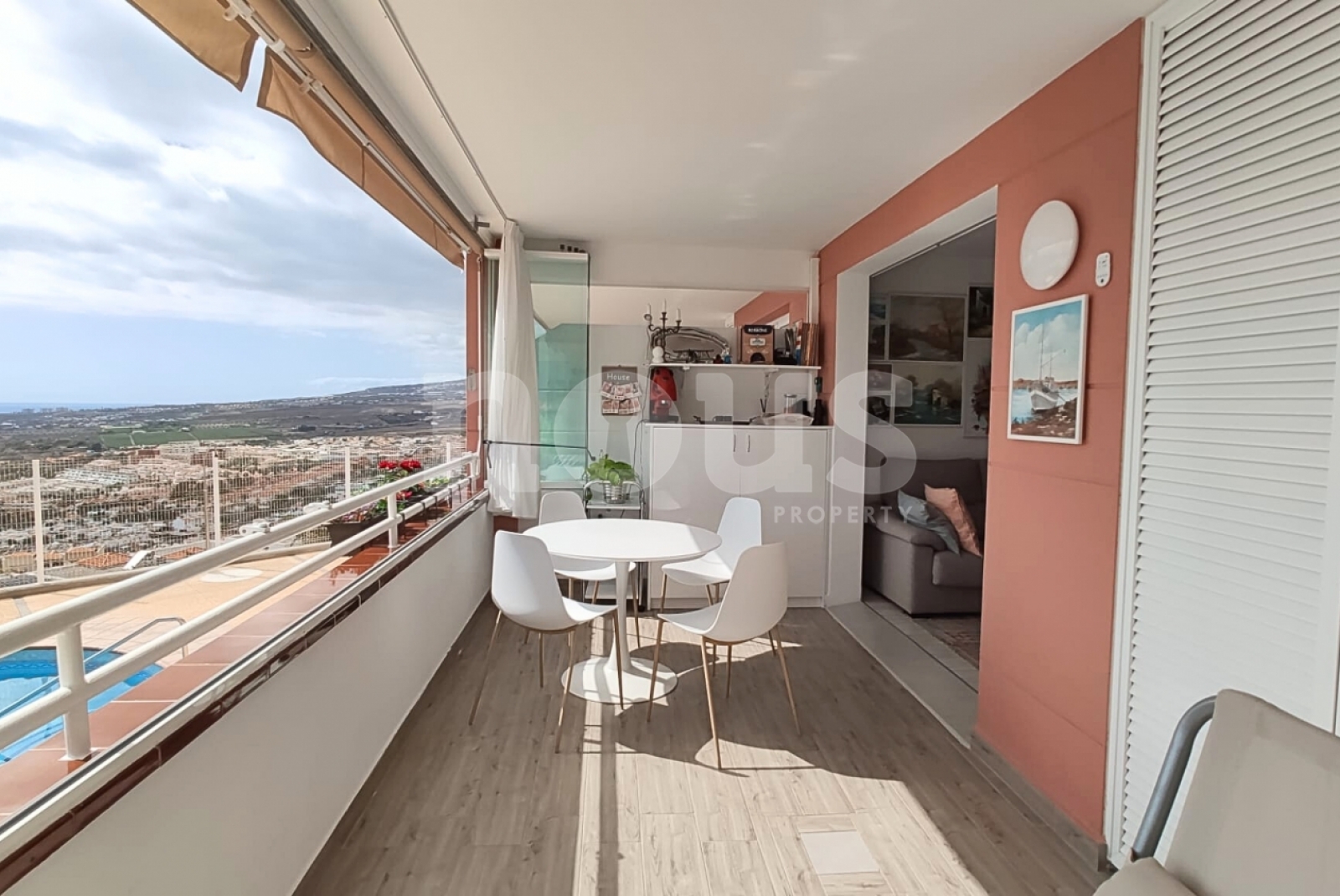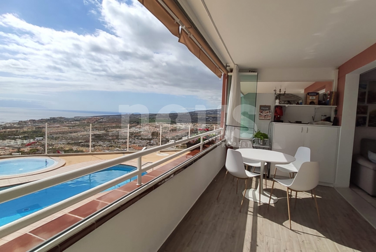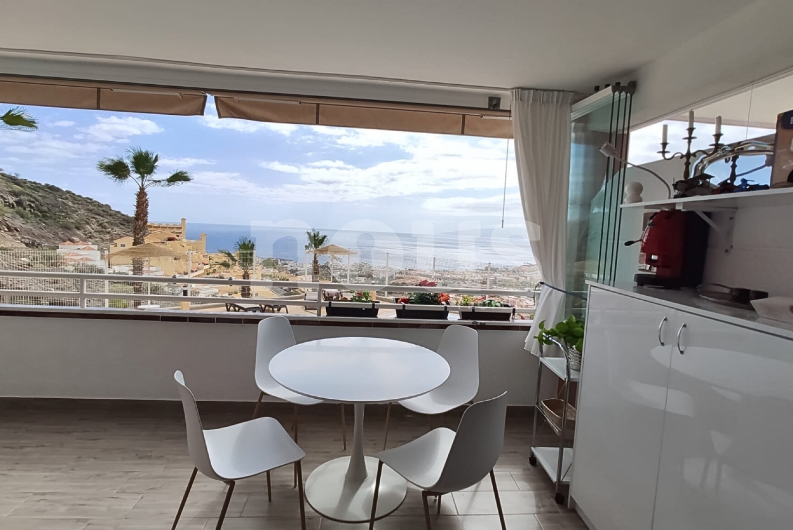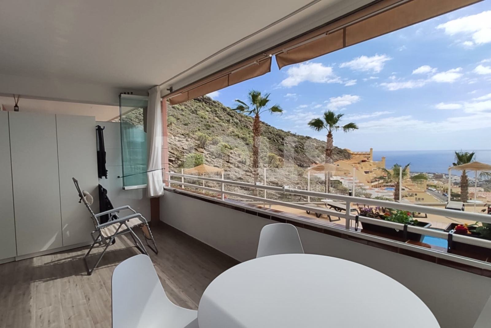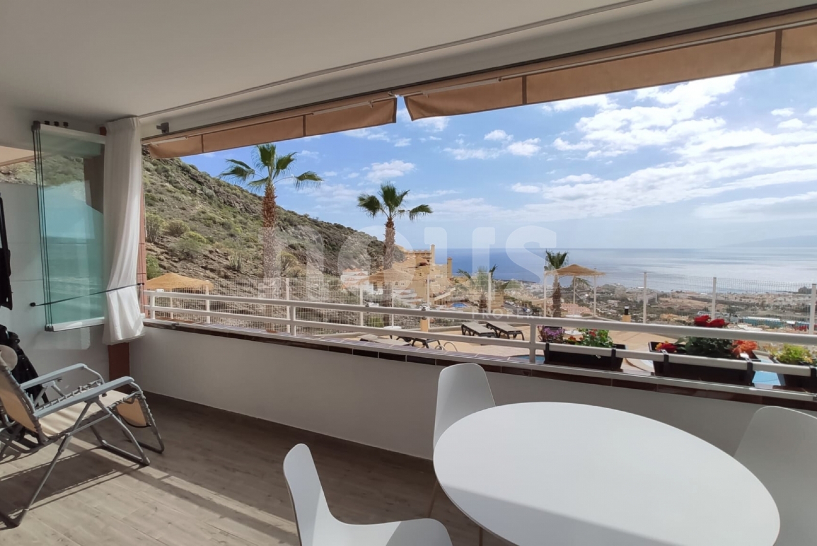 Luksus i bardzo jasne mieszkanie w kompleksie Sunset, w Torviscas Alto. Ma panoramiczne widoki na ocean, góry, Gomera i basen. Ma hol wejściowy, łazienkę z prysznicem i oknem, salon z amerykańską kuchnią i dostęp do szerokiego tarasu.