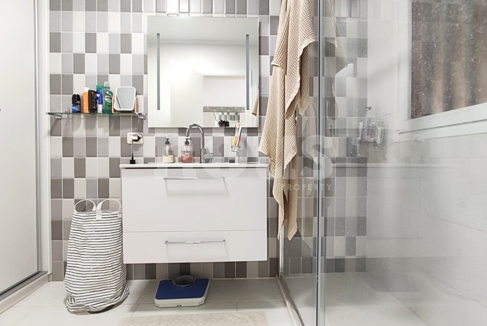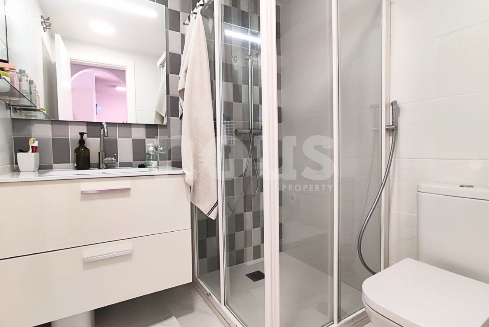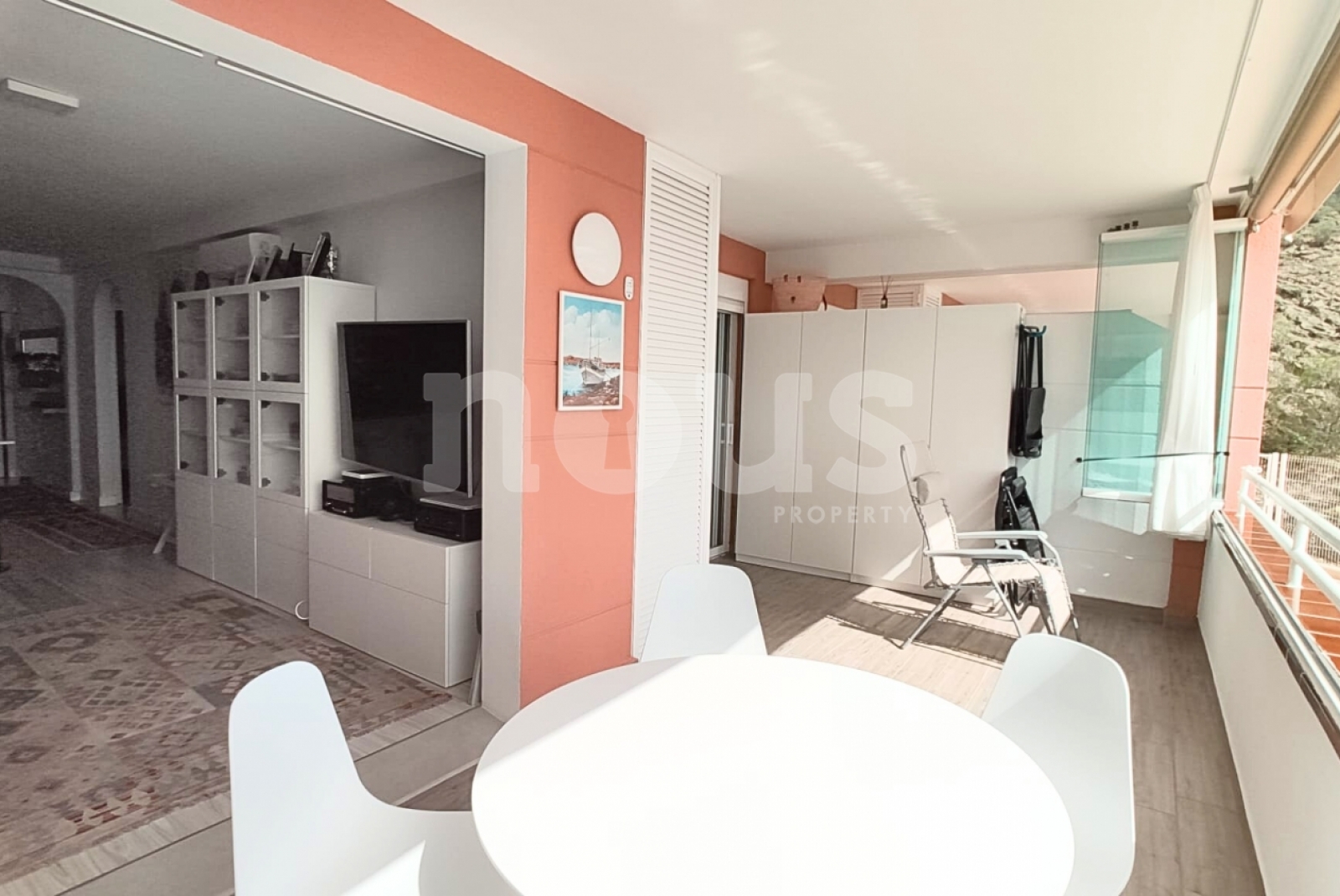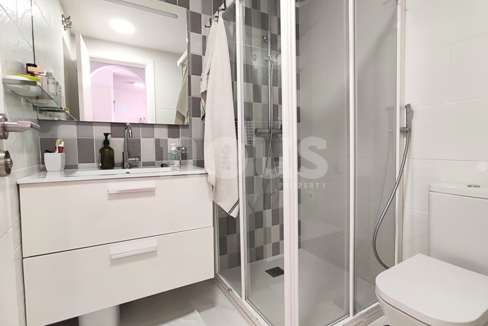 Zawiera zamknięty garaż 21 m². Kompleks oferuje windy, kamery bezpieczeństwa, ostrożne ogrody, dwa baseny w dolnej części (dziecko) i duży podgrzewany basen u góry.