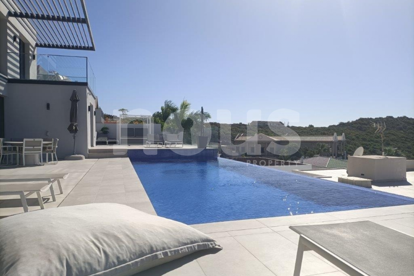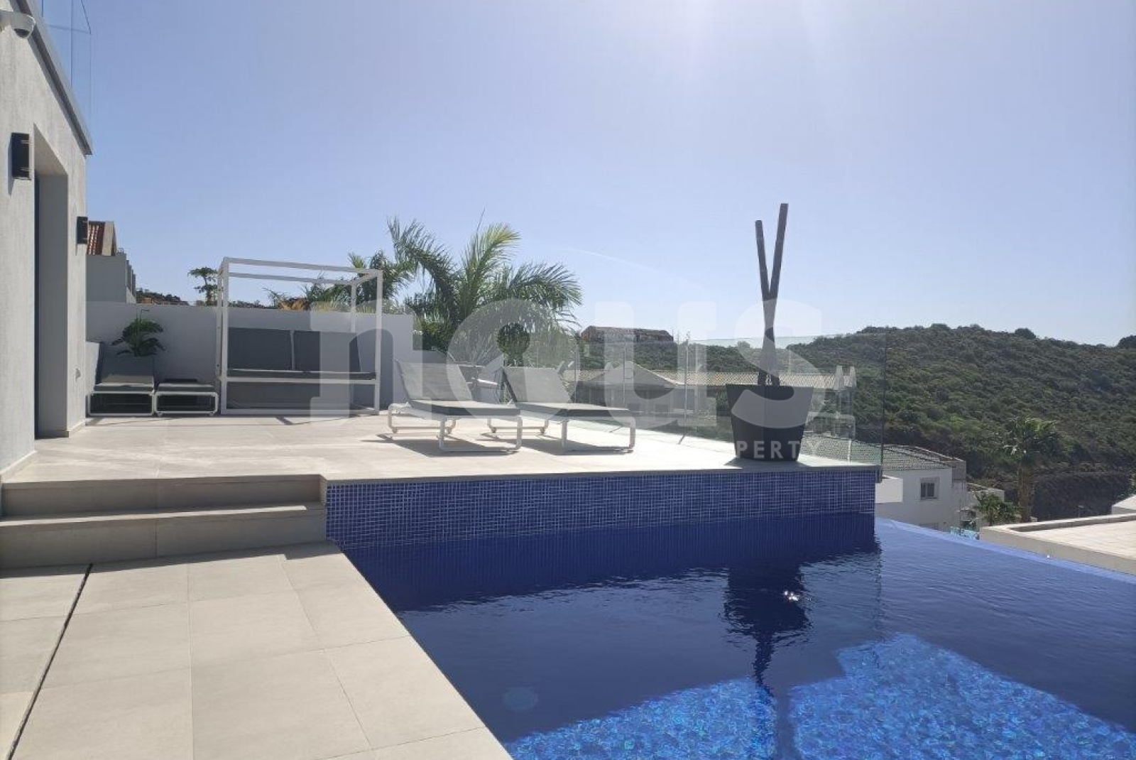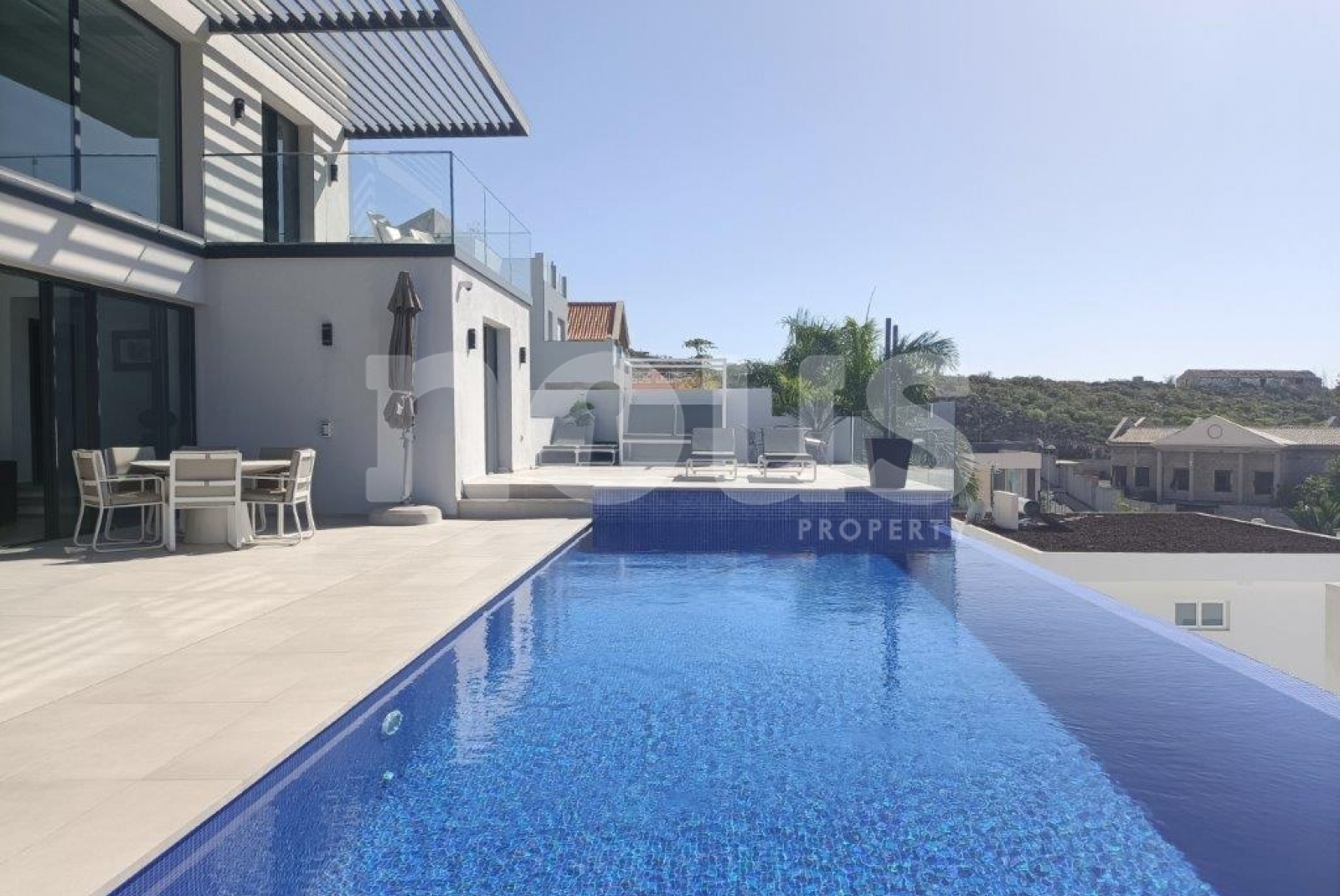 NousProperty ma przyjemność zaprezentować tę wspaniałą wolnostojącą willę z czterema sypialniami, basenem bez krawędzi i fantastycznym widokiem na morze. Ta luksusowa rezydencja to naprawdę wyjątkowa nieruchomość, jedna z najlepszych w tej prestiżowej okolicy na południu Teneryfy.
