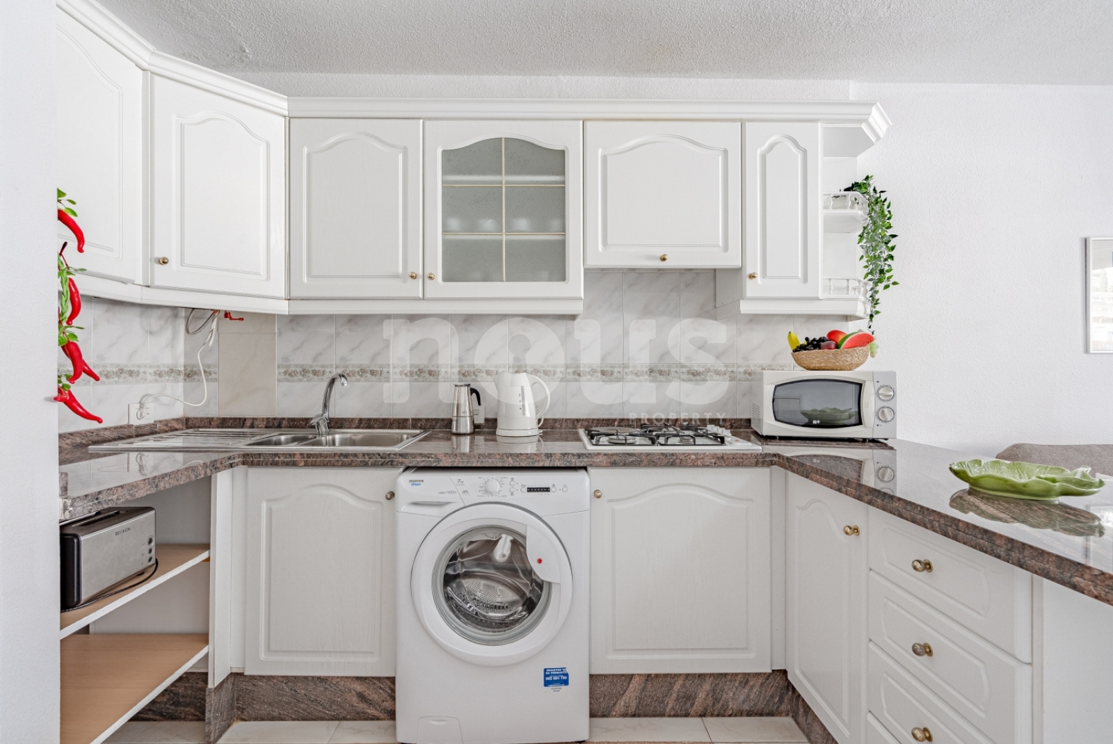 Внутреннее устройство квартиры включает в себя спальню с удобной двуспальной кроватью, полноценную ванную комнату с душем и интегрированную кухню с гостиной, оборудованную бытовой техникой, такой как газовая плита, чайник, микроволновая печь и холодильник. В гостиной есть диван-кровать, на котором могут разместиться два дополнительных человека, а также телевизор с функцией Smart TV. С балкона можно насладиться панорамным видом на море и величественные скалы.