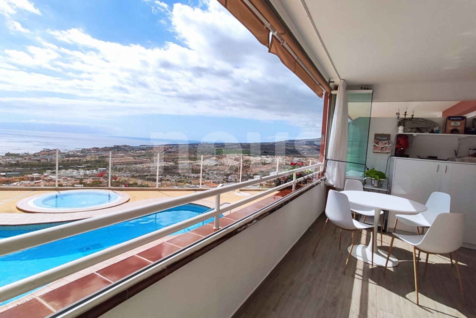 Роскошь и очень яркая квартира в комплексе Sunset, в Torviscas Alto. У него есть панорамный вид на океан, горы, гомери и бассейн. У него есть входной зал, ванная комната с душем и окном, гостиная с американской кухней и доступ к широко покрытой террасе.