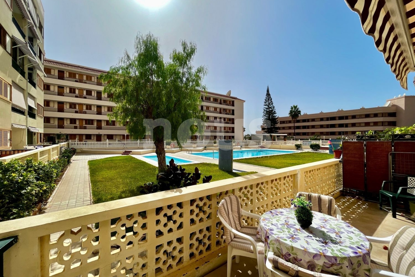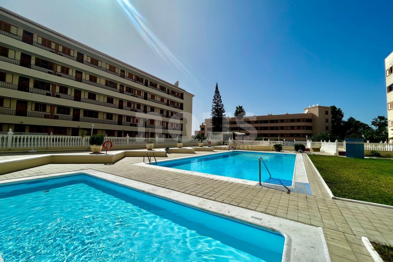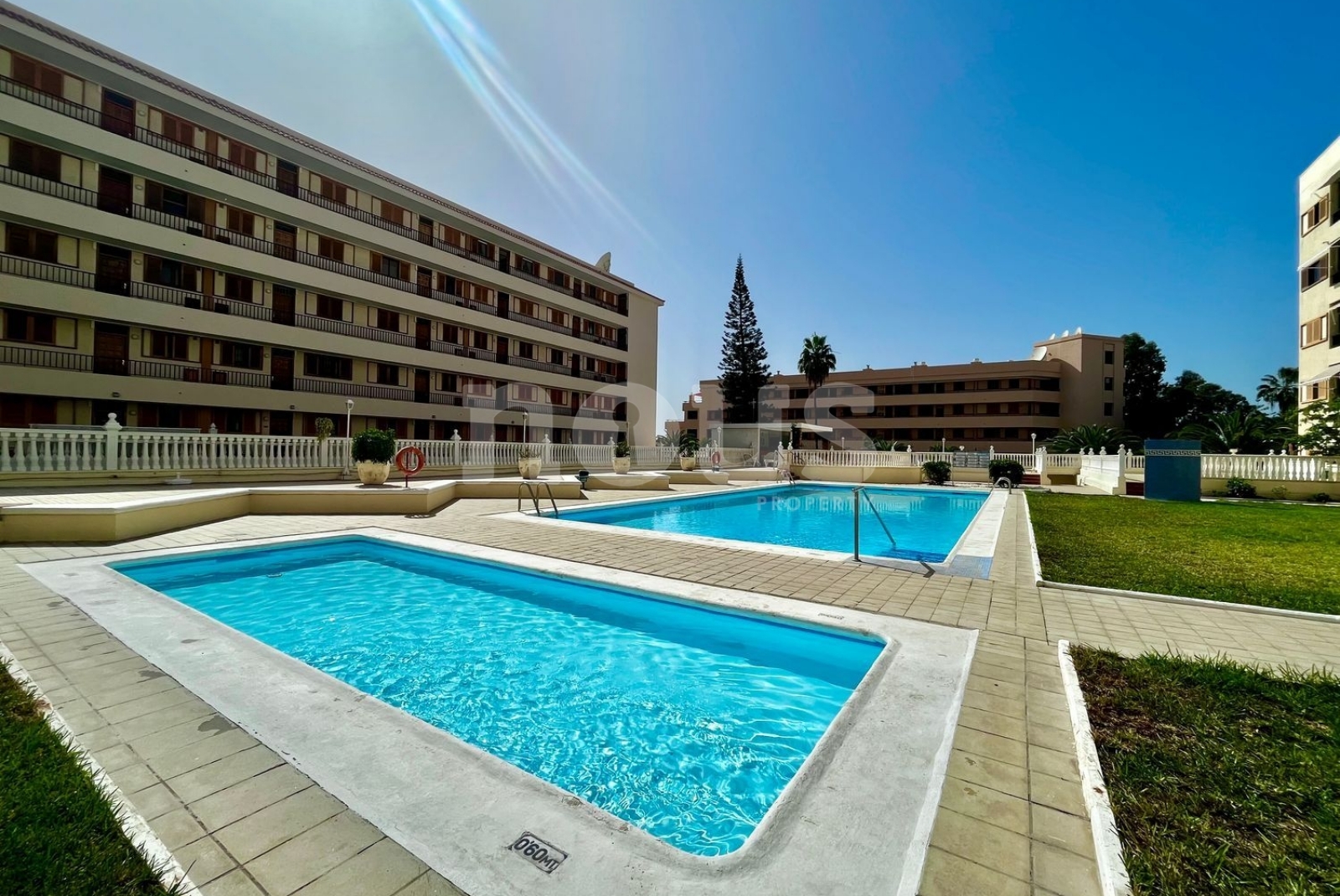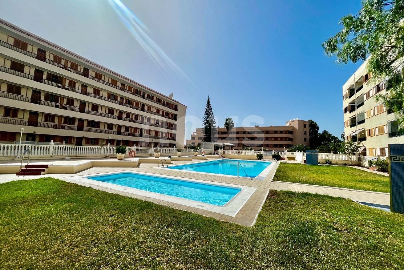 Он расположен в очень тихом жилом комплексе, в котором есть лифт и два общественных бассейна, окруженных красивыми садами.